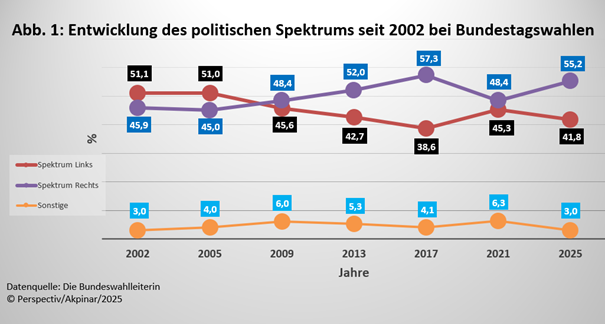 Das Essay „Erlebt Deutschland einen Rechtsruck?“ erscheint im Rahmen der analytischen Reihe PERSPECTIV – Neue Sicht auf Politik und Gesellschaft und untersucht die zentrale Frage, ob Deutschland tatsächlich vor einem ideologischen Rechtsruck steht – oder ob sich in erster Linie das Parteiensystem nach rechts verschiebt. Grundlage der Analyse sind die Bundestagswahlergebnisse zwischen 2002 und 2025, aktuelle Umfragedaten sowie wissenschaftliche Studien über politische Einstellungen in Deutschland.